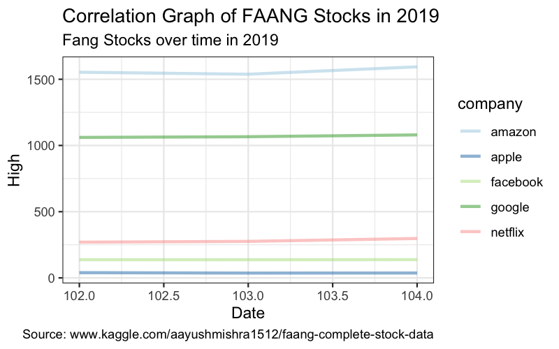 I got stock prices data of FAANG company in 2019 from a dataset from Kaggle and graphed an animated plot using R and ggplot2 to see the correlation between stock prices of the biggest tech companies.
